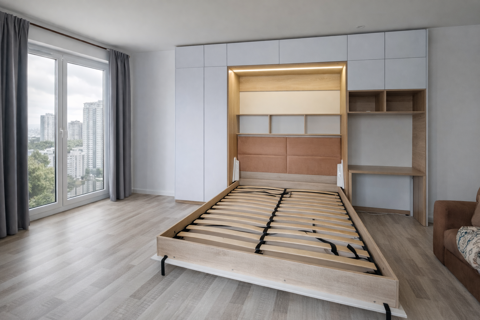 4. Это мебель трансформер, которая может использоваться как кровать или шкаф одновременно, экономя тем самым пространство.